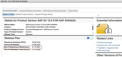 Cercano per ACCESS CONTROL è possibile trovare due soluzioni SAP ACCESS CONTROL 12.0 e la relativa versione per S/4HANA entrambe hanno come scadenza il 2027.