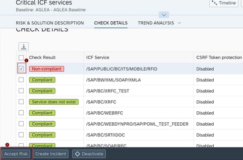 Ma esiste anche uno strumento altrettanto completo che permette in una unica suite di avere tutto a disposizione. Compresa la possibilità di accettare alcuni rischi. SecurityBridge nel modulo chiamato Security & Compliance Monitoring.