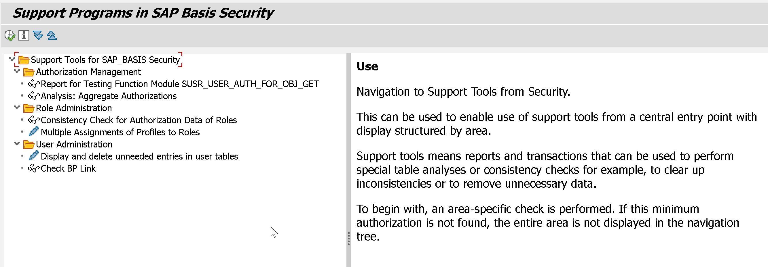 Questa transazione, che di fatto ne contiene diverse altre, è utile per quanto riguarda la risoluzione di problematiche autorizzative da parte del supporto SAP.